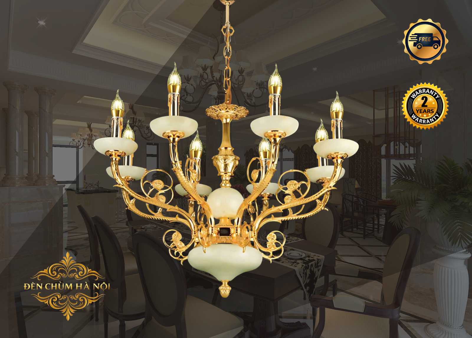 Đèn Chùm Châu Âu Cổ Điển Đồng Vàng Cao Cấp