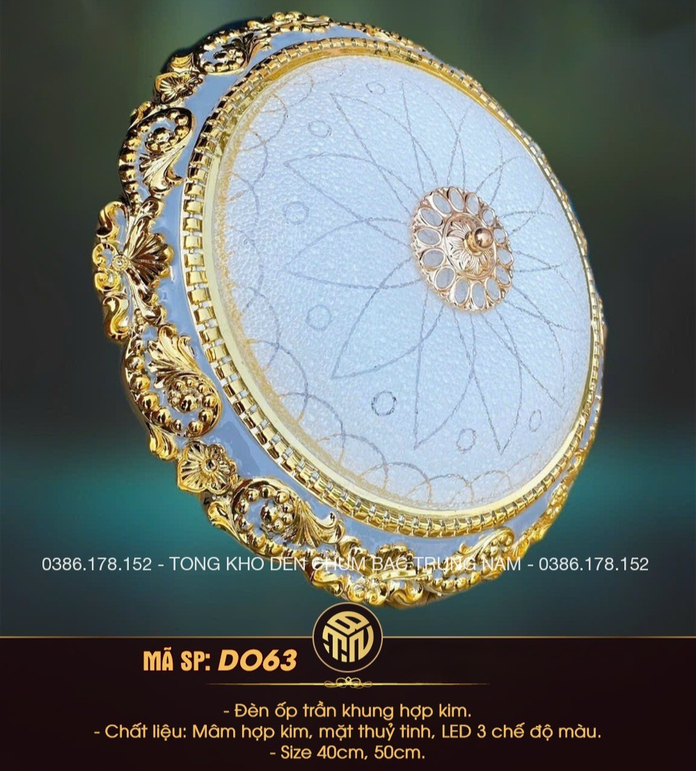 Đèn Ốp Trần Tân Cổ Điển Hoàng Gia DO63 – Khung Hợp Kim Mạ Vàng