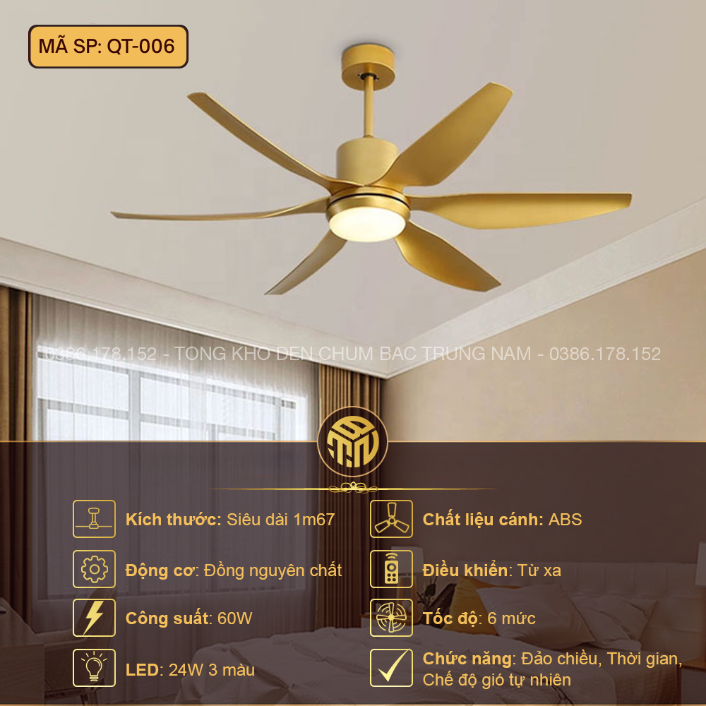 Chính sách đổi trả của Đèn Chùm Hà Nội về: Đèn Quạt Trần Hiện Đại QT-006 Màu Vàng Ánh Kim