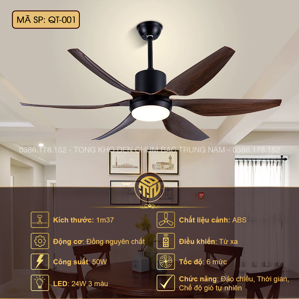Đèn quạt QT-001 mang đậm phong cách hiện đại pha chút Bắc Âu, đề cao sự tối giản, tinh tế và gần gũi với thiên nhiên.